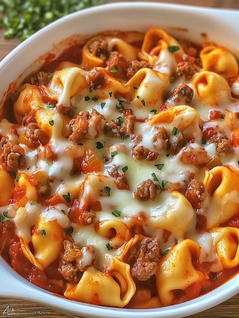 Here’s a delicious Baked Tortellini Casserole recipe that resembles what you see in the image!