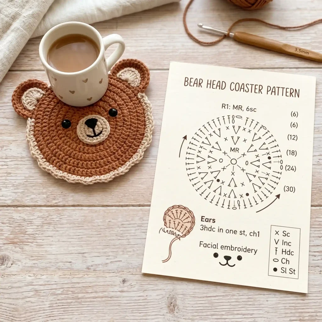 🧸 Bear Head Crochet Coaster Pattern (Beginner-Friendly & Quick DIY Project)