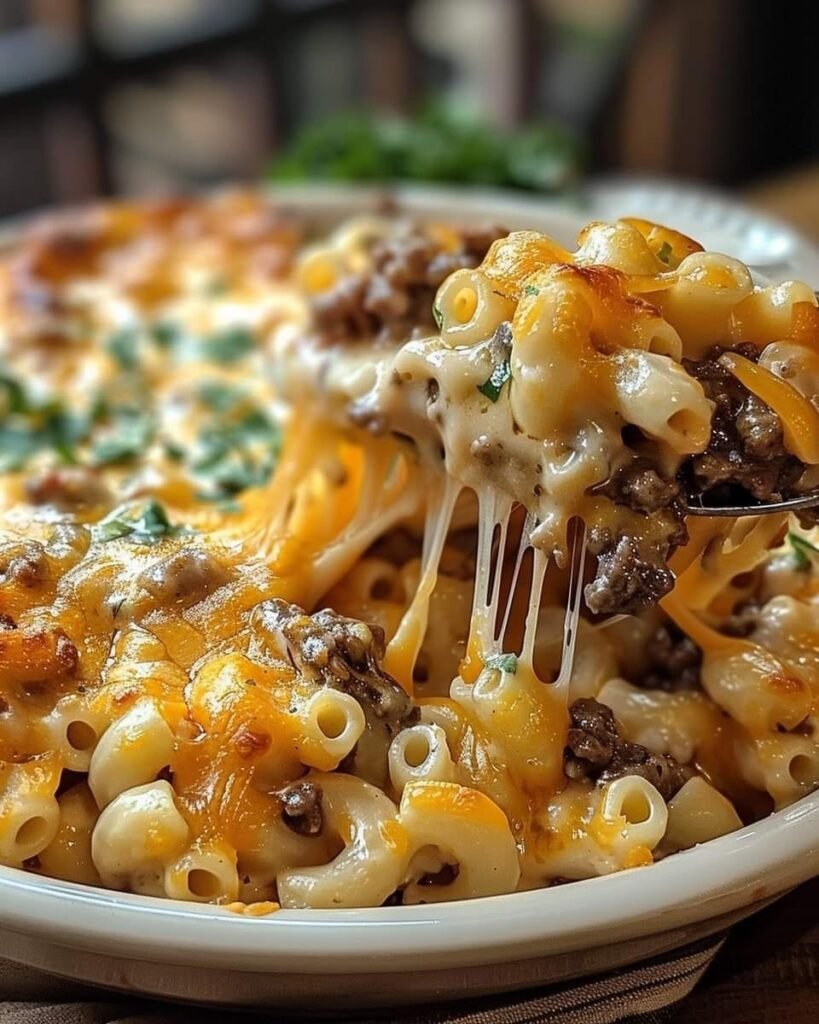 Here’s a hearty and delicious recipe for Mac ‘n’ Cheesy Cowboy Casserole! This dish combines creamy mac and cheese with savory ground beef, corn, and a hint of barbecue flavor for a comforting, crowd-pleasing meal.