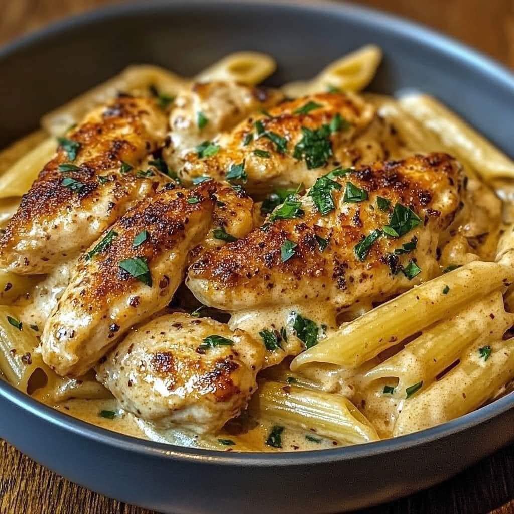 The crispy Parmesan coating on the chicken provides texture and flavor that contrasts beautifully with the creamy pasta. The homemade sauce is rich yet simple, bringing the whole dish together.
