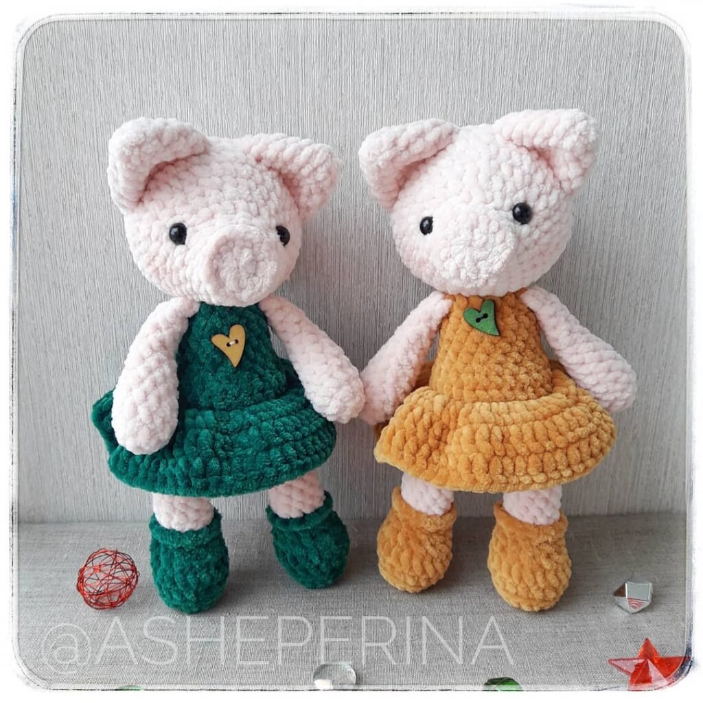 This soft and tactile amigurumi toy is a ballerina bear crocheted with plush yarn. The bear is dressed in a delicate pink tutu. The pattern is designed for yarns similar to Himalaya Dolphin Baby or YarnArt Velour. You can increase the length of the tutu by crocheting 1-2 more rows of single crochet without any increases. If you prefer, you can skip the tutu altogether and create a classic plush bear.